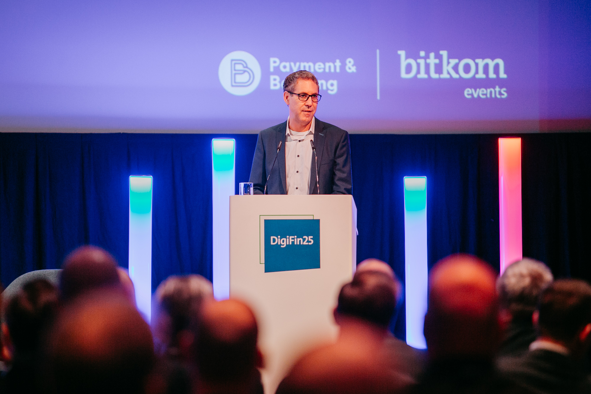 Im Anschluss an die Diskussion tritt Michael Schrodi, Parlamentarischer Staatssekretär im Bundesministerium der Finanzen, auf die Bühne. Er beschreibt die Lage aus Sicht der Bundesregierung und betont zunächst positive Entwicklungen im Markt: „Wir haben schon ein gutes Fintech-Ökosystem“. Mit Frankfurt, München und Berlin gebe es starke Standorte, und Deutschland stehe im europäischen Vergleich gut da. „Wir möchten den Vorsprung nicht nur halten, sondern ausbauen.“